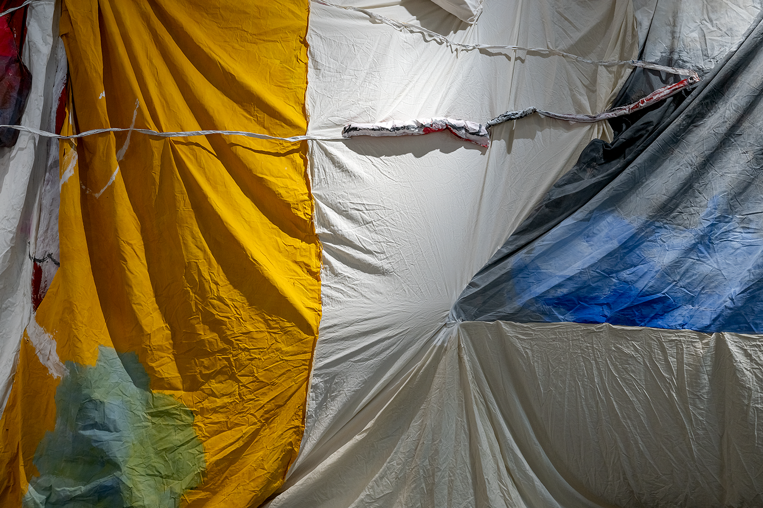 The artist treats her own works as if they were foreign material: stacking, wedging, knotting them, pushing them into corners, allowing some to become partially inaccessible. The exhibition space becomes a place in progress, suspended halfway between warehouse and display, where things are kept, displaced, and reconfigured. The project reflects on archiving, memory, and the quiet failure of order, asking what lingers in a practice over time and what resists being resolved. It is an attempt to take the incidental, the overlooked, and the unfinished seriously, as material, as atmosphere, and as part of an open, continually shifting artistic process.
